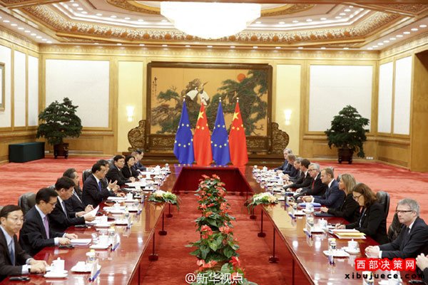新華網(wǎng)北京7月12日電國(guó)務(wù)院總理李克強(qiáng)12日下午與歐洲理事會(huì)主席圖斯克、歐盟委員會(huì)主席容克共同主持第十八次中國(guó)歐盟領(lǐng)導(dǎo)人會(huì)晤。雙方就鞏固中歐政治互信、穩(wěn)步落實(shí)合作共識(shí)、加強(qiáng)國(guó)際和地區(qū)事務(wù)中的溝通與協(xié)調(diào)等深入交換意見(jiàn)。(據(jù)新華社“新華視點(diǎn)”微博報(bào)道)