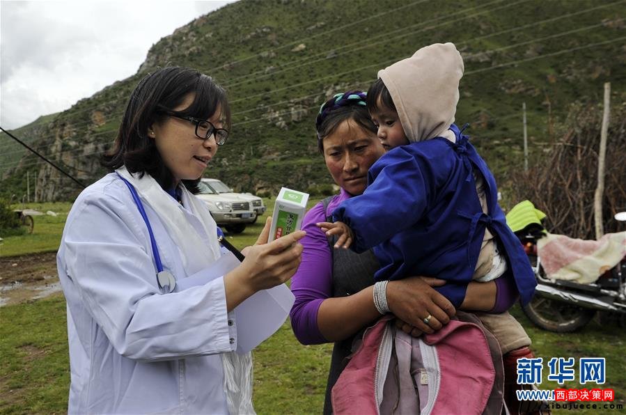 7月17日,北京大學(xué)第三醫(yī)院婦產(chǎn)科李華教授(左)在巴爾卡村牧區(qū)向農(nóng)牧民贈(zèng)送藥品。當(dāng)日,來自北京協(xié)和醫(yī)院、北京大學(xué)人民醫(yī)院、北京大學(xué)第三醫(yī)院等醫(yī)院的12名援藏醫(yī)療專家深入偏遠(yuǎn)的墨竹工卡縣門巴鄉(xiāng)巴爾卡村,為農(nóng)牧民義診。新華社記者 張汝鋒 攝