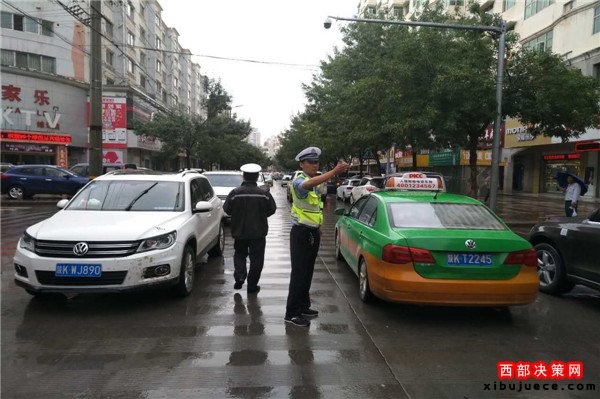但是,受雨天影響,城區(qū)部分路段不同程度受阻淤積,路面濕滑,能見度低,交通安全隱患突出,給廣大人民群眾出行帶來(lái)不便,為確保道路交通安全穩(wěn)定,靖邊縣公安局交警大隊(duì)城區(qū)二中隊(duì)領(lǐng)導(dǎo)高度重視,及時(shí)掌控路面情況,啟動(dòng)雨天應(yīng)急預(yù)案,落實(shí)各項(xiàng)有效管控措施,嚴(yán)防雨天道路交通事故發(fā)生。