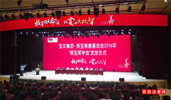 昨天上午,寶豐集團(tuán)·燕寶慈善基金會(huì)2016年“燕寶獎(jiǎng)學(xué)金”發(fā)放儀式在寧夏銀川市舉行。捐贈(zèng)儀式上,寶豐集團(tuán)·寧夏燕寶慈善基金會(huì)獎(jiǎng)勵(lì)9.2萬名學(xué)子,發(fā)放獎(jiǎng)學(xué)金2.64億元,新增受助學(xué)生2.6萬人。