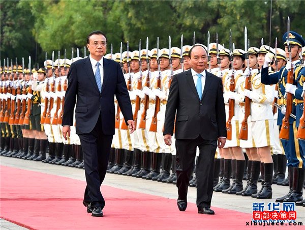 會談前,李克強在人民大會堂東門外廣場為阮春福舉行歡迎儀式。