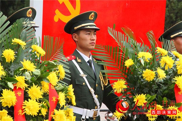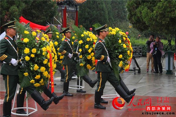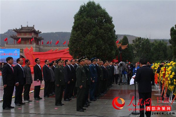 甘肅省領(lǐng)導(dǎo)和各界群眾代表向會(huì)師紀(jì)念塔敬獻(xiàn)花籃