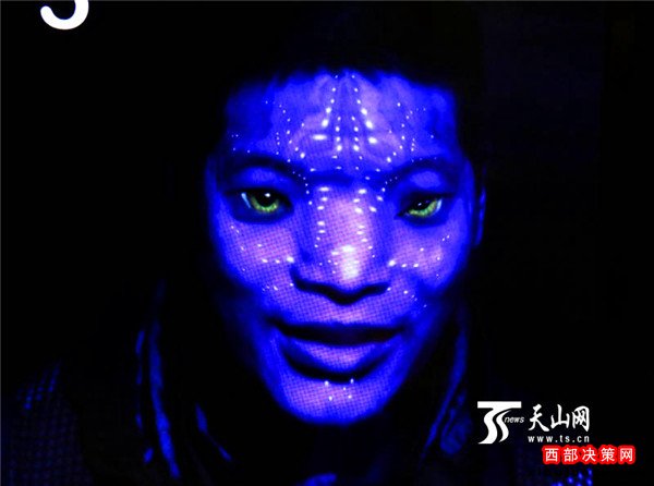 展品《阿凡達變形記》帶給觀眾的則是另一種奇妙。同樣是踩著一個光斑,觀眾面前的電子屏幕上就會呈現(xiàn)自己的頭像。這其實是展品在利用人臉識別技術(shù)以及計算機圖形算法,將觀眾的肖像捕捉下來,接著進行實時的五官拉伸變形。短短數(shù)秒,觀眾的頭像便被“異化”成電影《阿凡達》中那樣的外星人了。該作品曾作為20世紀??怂闺娪肮尽栋⒎策_》的交互式廣告,曾在美國紐約、洛杉磯等地推廣。