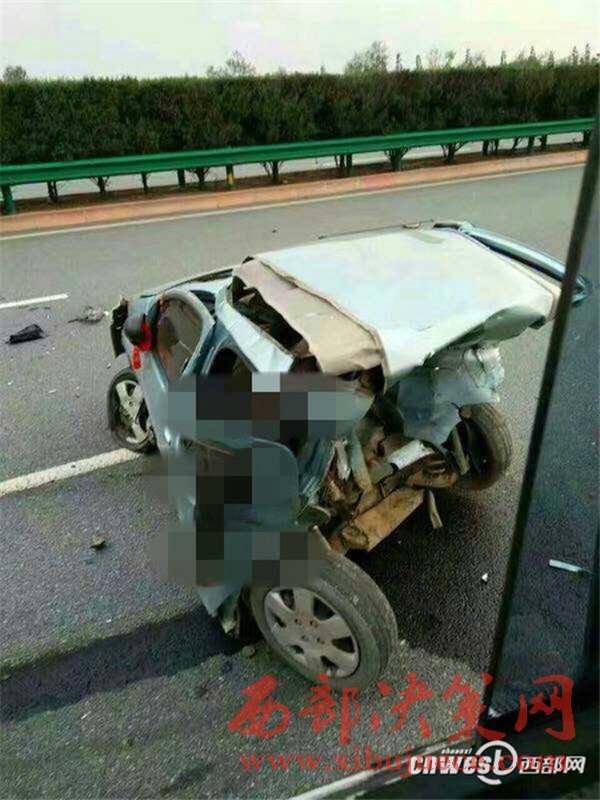 10月16日下午5點(diǎn)左右,西寶高速楊凌西至扶風(fēng)絳帳段,一輛牌照為甘EQ0029的白色寶馬小轎車與其前方行駛的一輛陜AJ835R的銀色比亞迪轎車發(fā)生追尾事故,事故造成比亞迪轎車內(nèi)乘坐的4人當(dāng)場(chǎng)死亡,寶馬轎車內(nèi)一人經(jīng)送醫(yī)院搶救無效死亡,車禍現(xiàn)場(chǎng)慘烈。
