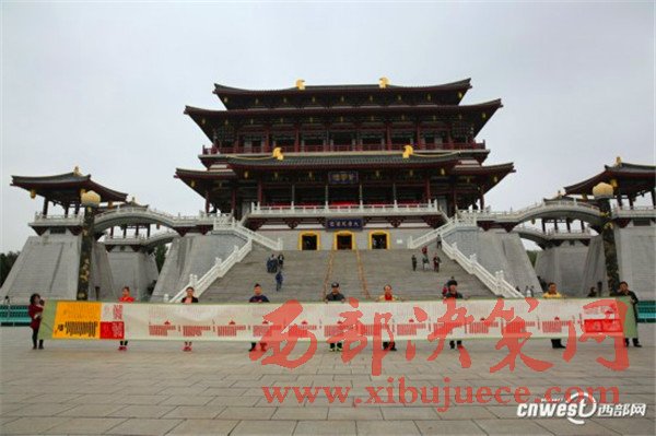 西安剪紙藝人大唐芙蓉園展示15米長《長征組歌》