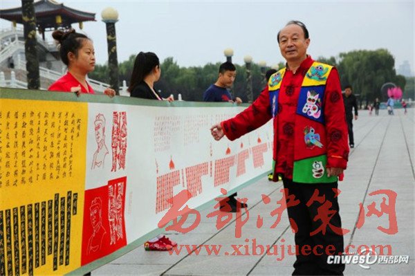 10月23日,西安“剪刀書法第一人”呂國嶺在西安大唐芙蓉園展示他剛剛完成的剪紙巨幅作品《長征組歌》。