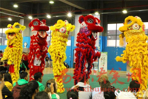 海外中學(xué)生在云南師范大學(xué)欣賞舞獅表演。