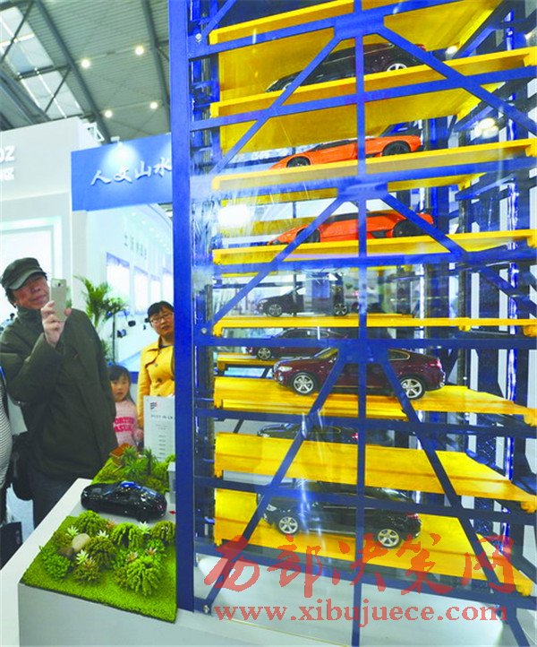 絲博會(huì)上,陜西隆翔停車(chē)設(shè)備集團(tuán)推出的APP預(yù)約立體智能停車(chē)的停車(chē)場(chǎng),吸引了大量參觀(guān)人員的駐足圍觀(guān)。