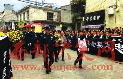 25日晚上,樊龍的遺體告別儀式在武都區(qū)公安局巡警大隊(duì)大院舉行。省公安廳派人專程為樊龍送行,隴南市、武都區(qū)公安民警代表及隴南市、區(qū)有關(guān)單位領(lǐng)導(dǎo)、職工、各界群眾代表、樊龍生前親朋好友,當(dāng)?shù)厥忻窦娂娮园l(fā)趕來(lái)參加遺體告別儀式,挽聯(lián)和花圈擺滿了巡警大隊(duì)的院子。