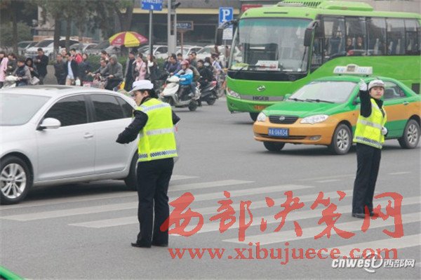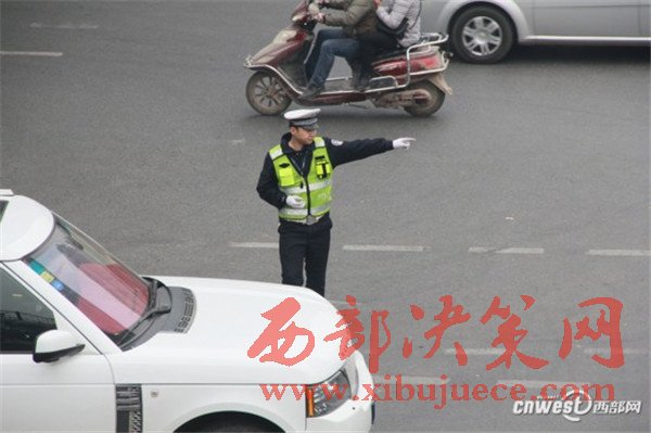 周日(20日)早高峰剛過(guò),小寨十字上的交警正在示意由西向北行駛的車輛左轉(zhuǎn)。