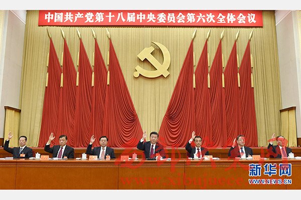 中國共產(chǎn)黨第十八屆中央委員會第六次全體會議,于2016年10月24日至27日在北京舉行。這是習(xí)近平、李克強(qiáng)、張德江、俞正聲、劉云山、王岐山、張高麗等在主席臺上。新華社記者李學(xué)仁攝