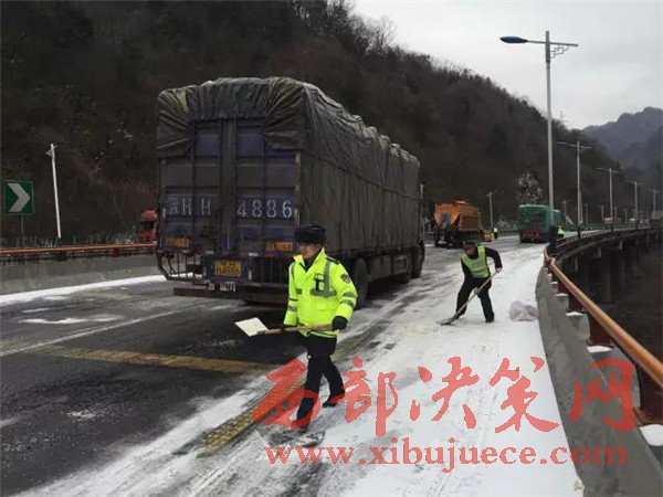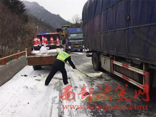 昨天寧陜境內(nèi)持續(xù)發(fā)布寒潮藍色預警,連續(xù)的雨雪、降溫、大風造成最低溫度降幅10度以上,山區(qū)最低氣溫達到零下6度,對交通運輸造成了較大影響。由于部分大型運輸車輛沒有及時更換防凍柴油,油路受凍無法啟動,部分緩坡路面結冰,載重車輛原地打滑,還有個別車輛由于路面濕滑造成的單方交通事故等原因造成了大面積擁堵。