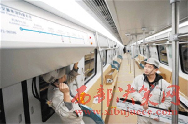 技術(shù)人員正在安裝地鐵6號(hào)線車(chē)廂設(shè)備。
