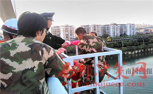 此時(shí),阿建已經(jīng)趕到橋頭,民警立即讓他先在遠(yuǎn)處等候,不要讓阿婷看見。通過阿建提供的電話號(hào)碼,民警聯(lián)系上了阿婷的父親,把電話撥通之后遞給阿婷,由其父親進(jìn)行勸說。此時(shí),在旁的消防官兵綁好救生繩索開始伺機(jī)出手。