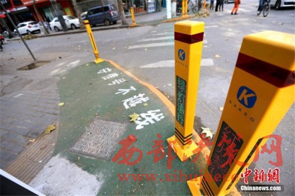 西安數個紅綠燈“提示樁”矗立在建國路口