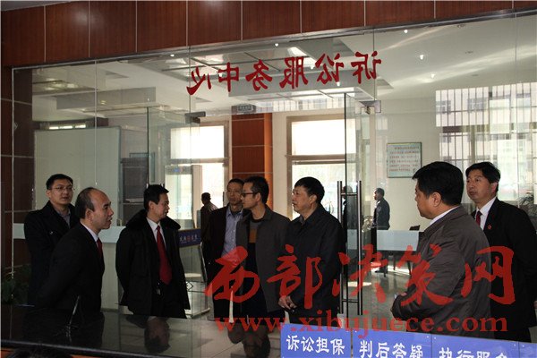 檢查組一行聽取了鳳翔法院副院長薛曉輝同志的工作匯報,實地察看了該院訴訟服務中心建設及訴調(diào)對接平臺規(guī)范化建設工作。薛院長從充分發(fā)揮審判職能作用,確保社會大局穩(wěn)定;依法妥善審理事關(guān)民生案件,穩(wěn)妥處理民事糾紛;強力推進執(zhí)行工作,積極開展執(zhí)行大會戰(zhàn);積極推進多元化糾紛解決機制及訴調(diào)對接平臺規(guī)范化建設;積極開展弘揚法制建設,助力法治鳳翔等五個方面匯報了鳳翔法院工作。