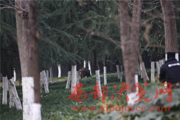 12月7日,安徽合肥,體重近200斤的成年野豬,出現(xiàn)在合肥市包河區(qū)政府大樓院內,民警兩次鳴槍,合肥市動物園工作人員吹了3針麻醉,“二師兄”愣是不倒。下午15時,包河區(qū)行政中心車來車往,前來辦事的群眾擠滿大廳,很多人并不知道,一只野豬就在附近溜達。“區(qū)政協(xié)一位女領導最先看到,上午7點多,就在國稅局后邊的綠化帶里頭。我也看到了,拿東西攆,它就往西頭跑。跟同事們說,都不相信我,講區(qū)政府怎么可能出現(xiàn)野豬。”物業(yè)師傅一臉認真,恨不得用手在空中畫出野豬的模樣,“我是農村過來的,那就是野豬,嘴巴又尖又長的嘛。”上午等保安們反映過來,野豬已經不知所蹤,大家便不了了之。結果下午1時許,大家伙又出現(xiàn)了。“先在綠化帶里曬太陽,被我們趕到包河區(qū)檢察院院子里,接著又跑到區(qū)政府東邊的綠化帶里。”