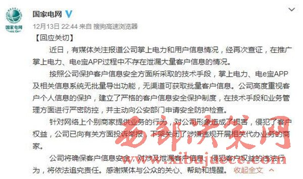 國網(wǎng)公司微博聲明