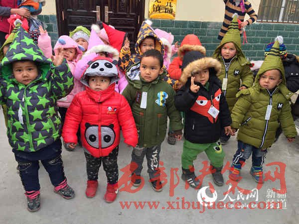12月12日,新疆溫宿縣吐木秀克鎮(zhèn)尤喀克斯日木村應(yīng)急雙語(yǔ)幼兒園里暖意融融。32名小朋友穿上了遠(yuǎn)在千里之外的浙江舟山市叔叔阿姨們寄來(lái)的冬衣褲。