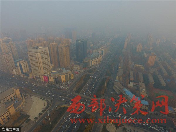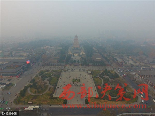 2016年12月18日,航拍重霾中的西安。