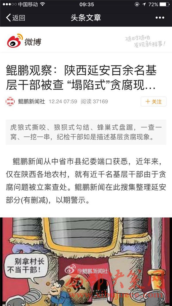 據微博 鯤鵬新聞社爆料 從中省市縣紀委端口獲悉,近年來,僅在陜西各地農村,就有近千名基層干部由于貪腐問題被立案查處。鯤鵬新聞在此搜集整理延安部分(有刪減),以期警示。