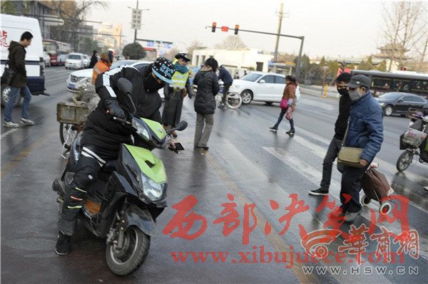 站在路口指揮疏導(dǎo)的交警碑林大隊(duì)文藝路中隊(duì)中隊(duì)長(zhǎng)馮侃說(shuō),受氣溫降低影響,清晨時(shí)分路面易結(jié)冰,過(guò)往車輛務(wù)必注意路況,尤其要保持車距,“同時(shí)也需要提醒行人和非機(jī)動(dòng)車,通過(guò)路口時(shí)務(wù)必觀察后通行,以免發(fā)生意外。”