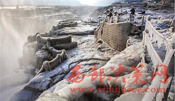 這些冰掛都是黃河水從瀑布傾瀉而下,冒起的水霧迅速凍結(jié)而成。兩岸的冰掛晶瑩剔透、造型各異,有的像龍須,垂懸在巖石上;有的如無暇白玉,鑲嵌在河岸旁。