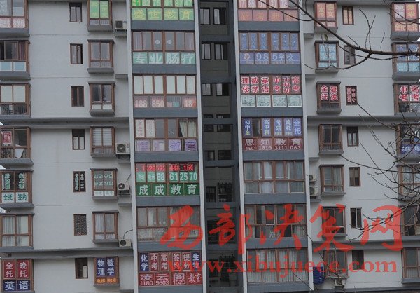 不過,自搬進來的第一天起,她感覺置身商業(yè)圈。樓道里,到處都是補習(xí)班的招生廣告。最令彭女士頭痛的是,學(xué)生最多的暑假,一天有五六次被敲門。