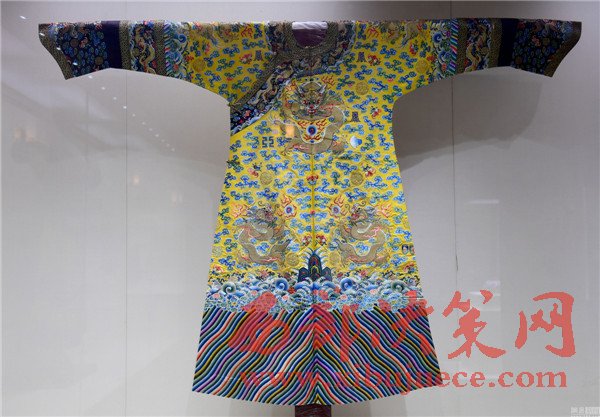 2017年01月05日,遼寧省沈陽市,沈陽故宮博物院舉行“錦繡華彩—院藏清宮織繡展”,清朝皇帝冬季朝袍首次亮相。沈陽故宮是中國僅存的兩大古代皇家宮殿建筑群之一,為清朝初期努爾哈赤和皇太極的宮殿,距今近400年歷史,貯藏近20萬件清宮御用物品和內(nèi)府秘籍。清明黃江綢繡金龍出鋒夾朝袍。