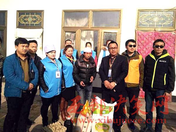 1月13日,寧夏海興義工聯(lián)合會(huì)銀川辦事處的工作人員來到銀川市賀蘭縣南梁臺(tái)子鐵東村、鐵西村,慰問當(dāng)?shù)?戶孤寡貧困家庭,捐贈(zèng)米面油和棉衣等生活物品,  “大娘,還有半個(gè)月就過年了,這是咱們企業(yè)的一點(diǎn)心意,祝您老身體健康,吉祥如意”。這次慰問空巢老人和貧困家庭的單位有:銀川培訓(xùn)學(xué)院、銀川美年大健康體檢醫(yī)院、海原馬軍飯莊、搏港旅游公司、寧夏雙玉農(nóng)業(yè)科技有限公司、寧夏塞杞源苗木專業(yè)合作社。今年年初,他們根據(jù)南梁臺(tái)子鄉(xiāng)提供的貧困戶名單,結(jié)合入戶走訪,最終確定了馬寶林、馬萍霞等8戶殘疾、孤寡貧困家庭。由寧夏蕊杰伯港旅游有限公司、 銀川美年大健康體檢醫(yī)院等7家協(xié)會(huì)成員企業(yè)共同出資購買生活物品,逐戶慰問,反哺社會(huì)。