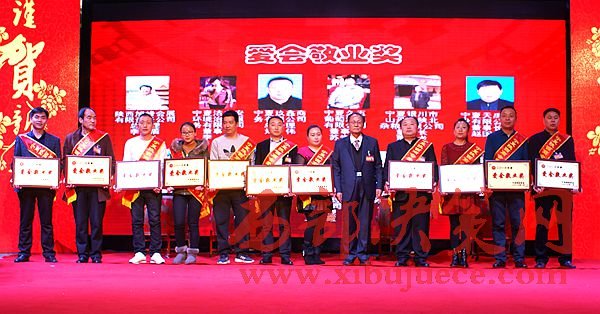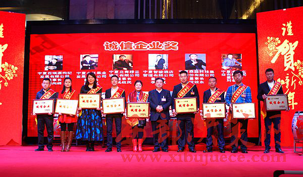 年會上,張海龍會長、李明義執(zhí)行會長一起向2016年新增常務(wù)副會長、副會長、理事授牌;商會黨支部書記、秘書長王惠選宣讀了寧夏陜西商會關(guān)于表彰獎勵2016年度特殊奉獻(xiàn)獎、誠信企業(yè)獎、創(chuàng)新企業(yè)獎、愛會敬業(yè)獎企業(yè)單位的決定。自治區(qū)人民檢察院原檢察長師夢雄向榮獲商會特別奉獻(xiàn)獎的張海龍會長、李明義執(zhí)行會長頒獎;張海龍會長、李明義執(zhí)行會長、黨支部書記、秘書長王惠選分別向11個榮獲誠信企業(yè)、11個榮獲創(chuàng)新企業(yè)、11個榮獲愛會敬業(yè)企業(yè)單位頒獎。