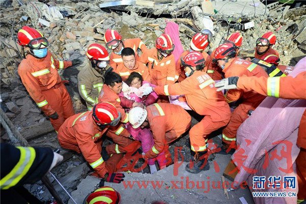 2月3日清晨,在浙江溫州文成民房倒塌事故現(xiàn)場,救援人員救出第二名幸存者。