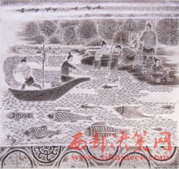 曹老經(jīng)過深思熟慮后1989年作出第一幅石鼓畫像,但他并不滿意。石鼓文的博大精深、源遠(yuǎn)流長豈能是他輕易能描繪得出來的!他覺得自己還沒有吃準(zhǔn)石鼓文的深邃含義。他明白:淺薄自滿是藝術(shù)的致命傷,能對自己自省和不滿的人,才會創(chuàng)作出能經(jīng)得起時間和歷史檢驗(yàn)的藝術(shù)佳作。曹老痛下心撕了又畫,兩易其稿后,心里還不踏實(shí),他必須尋找“最為挑剔的眼睛”。于是,他帶著十幅畫作,趕赴京城,讓石鼓專家鑒定審核。果不其然,專家們給他指出了一些問題:畫的時間不對,人物衣著不符合朝代特征。曹老虛心聽取了專家的意見,他返回寶雞,廢棄了原稿,重新考證人物的歷史特征,生活細(xì)節(jié)的一點(diǎn)一滴。他為了能精確地描繪先秦時期的人物和服飾,甚至每一件物件、器皿、圖案,他借來了秦兵馬俑博物館的圖像和資料,依據(jù)兵馬俑中人物的衣著打扮,紋飾車馬,2000年之后,第三次拿起筆重新準(zhǔn)確地描繪出了十面石鼓中的眾多人物、眾多民俗風(fēng)情。為了讓《石鼓文圖》經(jīng)受更嚴(yán)格的“審批”,曹老并沒有急于發(fā)表,而是連續(xù)奔波了幾年,直到2007年終于定稿與世人見面。