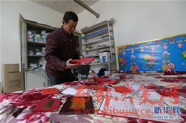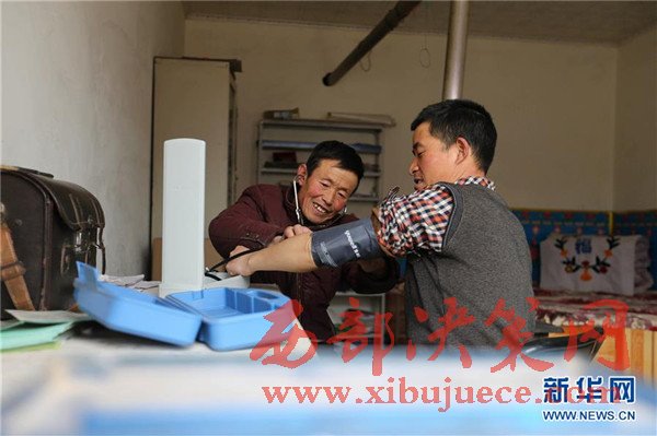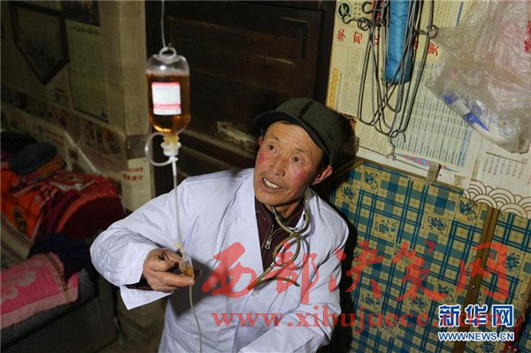 村醫(yī)牟天明在村民家中為患者診療(2月6日攝)。大年初十,在寧夏固原市西吉縣新?tīng)I(yíng)鄉(xiāng)二府營(yíng)村泥濘的村道上,身高不足一米六的村醫(yī)牟天明背著醫(yī)療箱,一瘸一拐地前往離家5公里的患病村民家中。春節(jié)以來(lái),這已是他第18次出診。年近六旬的牟天明在上小學(xué)時(shí)腿部突發(fā)疾病,由于當(dāng)時(shí)鄉(xiāng)村醫(yī)療條件有限,落下了終身殘疾。他沒(méi)有失去對(duì)生活的信心,從初中開(kāi)始就自學(xué)醫(yī)學(xué)知識(shí),1977年高中畢業(yè)后,牟天明回村做了一名赤腳醫(yī)生,這一干就是40年。 40年來(lái),牟天明行醫(yī)始終站在患者的角度,讓村民跑最少的路、花最少的錢(qián)解除病痛。不論白天黑夜、風(fēng)霜雨雪,只要村民有需要,他就會(huì)背上醫(yī)療箱出診,足跡遍及二府營(yíng)村的每一戶人家,被村民稱為村里的健康“守護(hù)神”。