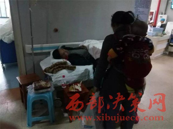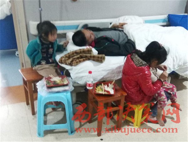 當天下午,記者來到醫(yī)院,見到了王先生一家2個大人,4個孩子6口人。王先生躺在病床上,正吸著氧氣,三個孩子圍在王先生身邊,王先生妻子還背著尚在襁褓中的小女兒。
