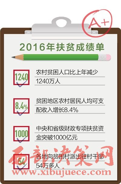 2016年,我國扶貧投入力度空前。財力投入上,中央和省級財政專項(xiàng)扶貧資金首次突破1000億元,其中中央財政667億元,同比增長43.4%。792個貧困縣啟動實(shí)施涉農(nóng)資金整合試點(diǎn),實(shí)際整合到位資金約2300億元,惠及建檔立卡貧困人口3000多萬人。各類金融機(jī)構(gòu)加大扶貧支持力度,到2016年底,累計發(fā)放扶貧小額貸款2833億元,全國共有801萬貧困戶受益。人力投入上,各地共向貧困村選派駐村工作隊(duì)12.8萬個,派出駐村干部54萬多人。全國選派18.8萬名優(yōu)秀干部到貧困村和基層黨組織薄弱村擔(dān)任第一書記,提升帶動群眾脫貧能力。