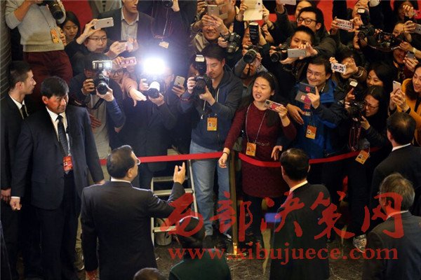 【大批“蹲守”記者,驚喜等來總理】4日下午,李克強走進全國政協經濟、農業(yè)界委員駐地時,大批“蹲守”記者驚喜之下紛紛舉起手機和錄音筆,亮出“長槍短炮”,爭相向總理提問。李克強在進來和參加完聯組討論離開時,兩次在記者隊伍前駐足,并回答了幾個問題??偫泶舐曊f,要對中國經濟充滿信心!