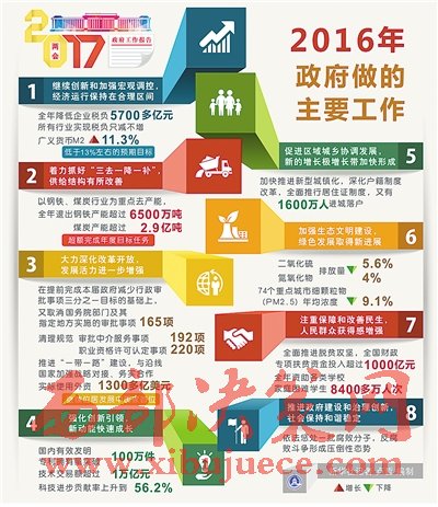 國務(wù)院總理李克強(qiáng)5日在作政府工作報告時說,過去一年,我國發(fā)展面臨國內(nèi)外諸多矛盾疊加、風(fēng)險隱患交匯的嚴(yán)峻挑戰(zhàn)。在以習(xí)近平同志為核心的黨中央堅(jiān)強(qiáng)領(lǐng)導(dǎo)下,全國各族人民迎難而上,砥礪前行,推動經(jīng)濟(jì)社會持續(xù)健康發(fā)展。黨的十八屆六中全會正式明確習(xí)近平總書記的核心地位,體現(xiàn)了黨和人民的根本利益,對保證黨和國家興旺發(fā)達(dá)、長治久安,具有十分重大而深遠(yuǎn)的意義。各地區(qū)、各部門不斷增強(qiáng)政治意識、大局意識、核心意識、看齊意識,推動全面建成小康社會取得新的重要進(jìn)展,全面深化改革邁出重大步伐,全面依法治國深入實(shí)施,全面從嚴(yán)治黨縱深推進(jìn),全年經(jīng)濟(jì)社會發(fā)展主要目標(biāo)任務(wù)圓滿完成,“十三五”實(shí)現(xiàn)了良好開局。