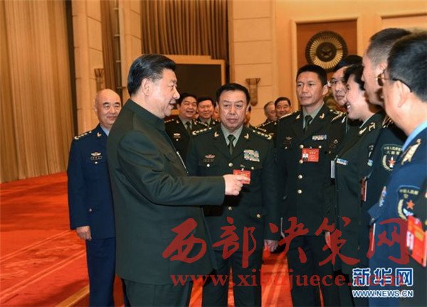 代表發(fā)言后,習近平發(fā)表重要講話。他強調(diào)指出,黨的十八大以來,在黨中央和中央軍委領(lǐng)導下,全軍圍繞實現(xiàn)強軍目標,統(tǒng)一思想,抓緊工作,國防和軍隊改革實現(xiàn)歷史性突破,軍事斗爭準備取得重大進展,反腐敗斗爭形成壓倒性態(tài)勢,我軍建設(shè)呈現(xiàn)嶄新氣象。