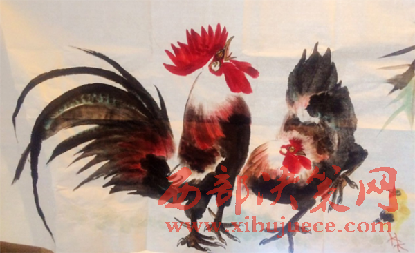 我畫(huà)的公雞被公雞鹐了:畫(huà)雞已經(jīng)成了他每天的必修課,2004年12月的一天,他下班回家吃過(guò)晚飯,到后院抱了一只公雞到屋里準(zhǔn)備觀察做畫(huà),他把公雞放在地上,由于新環(huán)境公雞的頭上下左右窺視看看四周。突然,公雞先是跳到了床上,然后從床上跳到箱子上,從箱子上飛向掛在墻上以前畫(huà)的雄雞,鹐了畫(huà)上雄雞的脖子。它把我畫(huà)的公雞誤當(dāng)成同類(lèi)了,它向同類(lèi)發(fā)起了攻擊,卻沒(méi)有發(fā)現(xiàn)那是我畫(huà)的畫(huà)??磥?lái)我畫(huà)的雞同類(lèi)已經(jīng)無(wú)法分辨出來(lái)了,我要發(fā)誓必須努力的繼續(xù)畫(huà)下去。他非常激動(dòng)的介紹到。