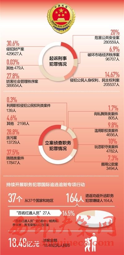 去年一年,檢察機(jī)關(guān)共立案?jìng)刹槁殑?wù)犯罪47650人,其中包括21名原省部級(jí)干部,對(duì)令計(jì)劃、蘇榮等48名原省部級(jí)以上干部提起公訴。檢察機(jī)關(guān)繼續(xù)開(kāi)展集中整治和加強(qiáng)預(yù)防扶貧領(lǐng)域職務(wù)犯罪專項(xiàng)工作,查辦相關(guān)職務(wù)犯罪1892人,同比增長(zhǎng)102.8%。此外,還在征地拆遷、社會(huì)保障等民生領(lǐng)域查辦“蠅貪”“蟻貪”17410人。
