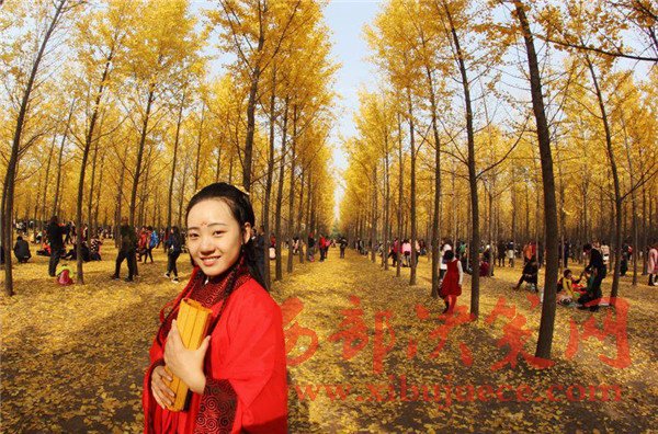 據了解,這片銀杏林早已經是遠近聞名的“網紅”林,來漢陽陵參觀游覽的游客,必會到此一游,并留下倩影。有不少游客是專門帶著拍照道具來的,只為將這美景與自己定格在照片上。
