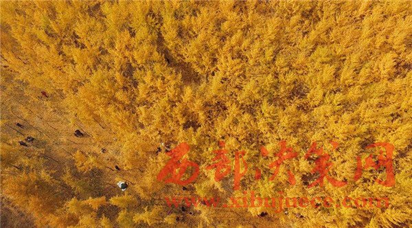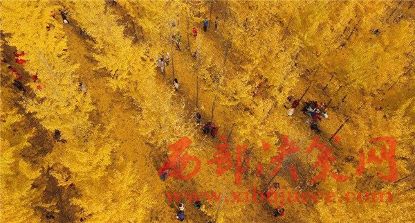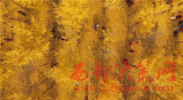 近日,位于西安市渭水之濱的漢陽陵銀杏林已經完全呈現出一派金黃的世界。