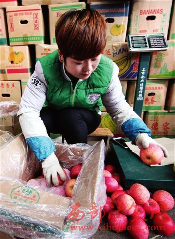 把蘋果按個頭大小、顏色深淺碼放在紙箱里,王女士每天要重復這樣的動作幾十次。