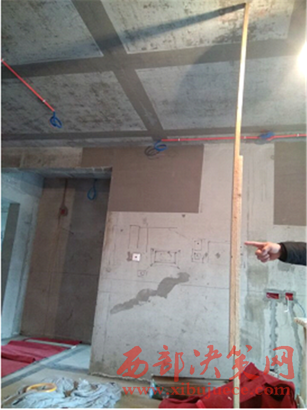 更令人目瞪口呆的是,拿一根木桿丈量,客廳中央部位和墻根部位竟錯位約3公分左右。