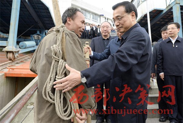 2014年4月27日,李克強(qiáng)在萬州港碼頭與重慶的“棒棒”交流。