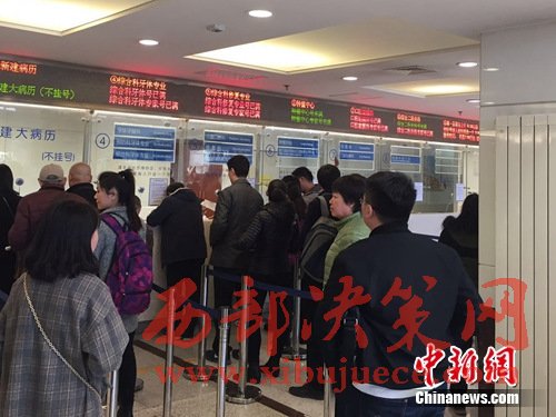 圖為市民們?cè)诒本┐髮W(xué)口腔醫(yī)學(xué)院大廳排隊(duì)掛號(hào)。