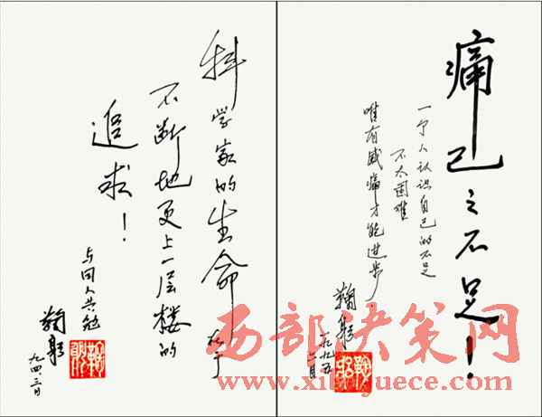 鞠躬院士在自己自傳中寫道:我對自己的評論是無偉業(yè),點燃一支燭光而已??部部揽酪簧?,現在蠟炬已幾乎成灰了。愿我國早日成為培養(yǎng)諾貝爾獲得者的土壤,愿我們世世代代青出于藍勝于藍。