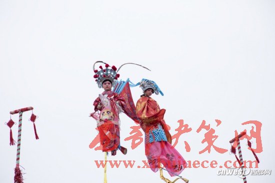 兩個小孩正在進(jìn)行社火表演。