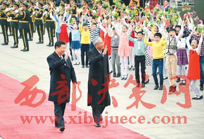 會談前,習(xí)近平在人民大會堂東門外廣場為吳廷覺舉行歡迎儀式。習(xí)近平主席夫人彭麗媛、全國人大常委會副委員長嚴(yán)雋琪、國務(wù)委員楊潔篪、全國政協(xié)副主席王家瑞等出席。
